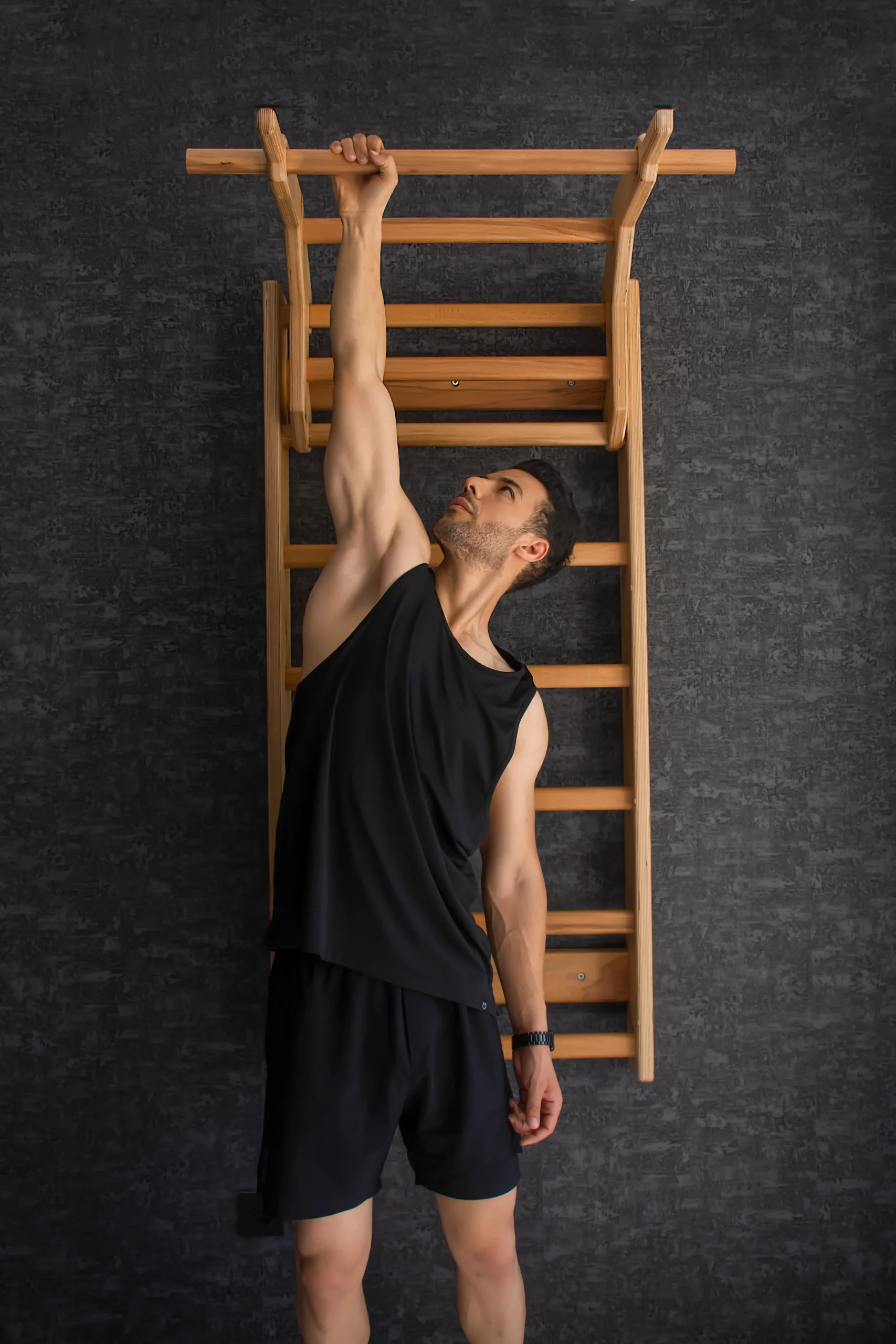 مدل ۱۵۰ سانتیمتری با ارتفاع نصب ۴۰ سانت از زمین، مناسب فضاهای کوچک، برای حرکات بارفیکس و پارالل طراحی شده؛ سبک، ایمن، کمجا و مناسب تمرینهای پایه در خانه
